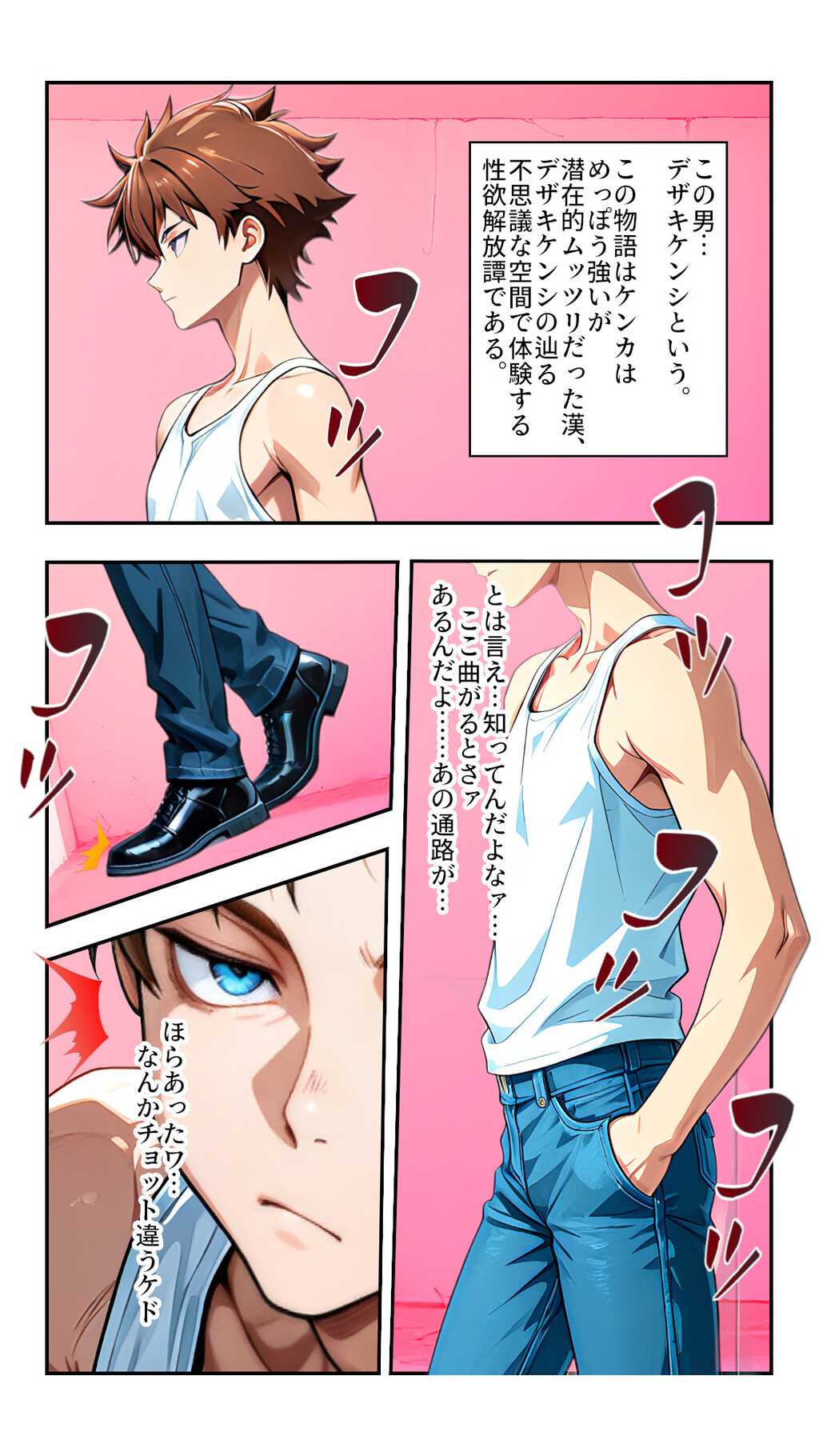 ちなみに前述の「画角とある程度のコマ割りが終了した」のが➡の図になります。これでいいやってしてしまえばこれはこれで完成なんですね。結構こういう形で出力した画像を挿し込んで、コマ割りしてちょっとセリフ吹き出しとオノマトペ入れて終了ってしてしまえばあっという間に完成してしまうんですね。ただ、私のこのシーンで表現したいことは「エロさ」は当然乍ら「ピンクの魔力が蓄積されている様子」や「おっぱいの躍動感」「主人公のココロの奥から出てくるエロス」こういった要素がいくつもあるのです。例えばキャラクターのスキンなんかは、光源を当てて色見をピンクっぽくしたりするところから始まって、おっぱいのブレ要素加減の調整や、オノマトペ風セリフの作成と加工であったり……熟練したスタンド使いならばこのような小細工なんてせずに生成AI一発で終了なんですが、私程度の小物だと稀にセンタリングからのごっつぁんゴールがあるくらいで、ほとんどはこのような加筆にねっとりじっくり時間をかけて製作しています。いまこうやってジーっとみてたら完成品の3コマ目の主人公の顔はグラデで消すくらいならコマから初めからちょんぎってあげたほうがスマートだな。と思いました。こうやって一つずつ学んでいくんですね。