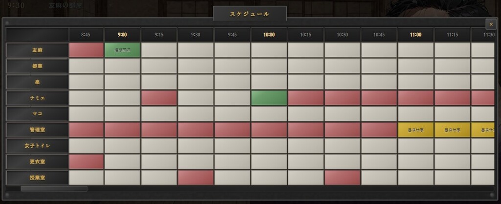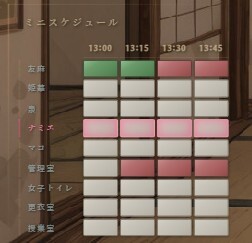 今の現時点にはなりますが、登場する女の子は5名の予定です。まだ1名だけスケジュールに情報をインプットし、テストプレイを繰り返している状況ですが、ネタゲット時の挙動がまあ、やってて非常に難しい。うまく作れるといいなぁ。