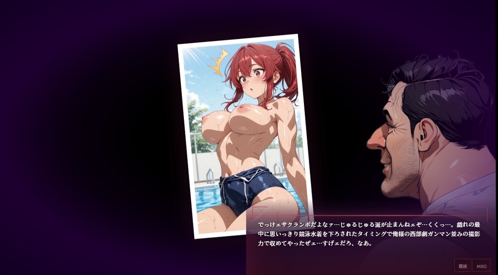 だがなァ……。俺様はただ、鼻をほじりながら砂漠で雨を待つカクタスをやってたワケじゃねェぞォ。この3か月、カタログに載せたい極上の果実たちを徹底的にマークし、奴らが墓場まで持っていきたいであろう決定的なネタを、この俺様が通りすがりに見つけたスマホを使ってよォ……しっかりと集めて追い込もうじゃねェか、なァ。……くくっ…さァて、最後の1日だぜェ……っ。この手札を使って、女学園を「欲望という名の巨大なシェイカー」に変えてやろうじゃねェか……。